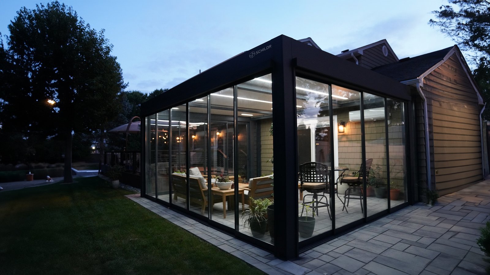 This project takes outdoor living to the next level with a fully enclosed patio system. The motorized louvered roof gives complete control over sun and shade, while sliding glass walls create a seamless indoor-outdoor flow. On warm days, the space opens wide to the garden; when privacy or protection is needed, the glass and side screens transform it into a sheltered retreat. Integrated lighting ensures the patio is just as inviting at night as it is during the day. With this system, the homeowners enjoy year-round comfort without giving up the fresh air, light, or views that make outdoor living special.